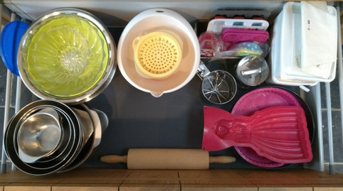 Confronterend moment wanneer je moet toegeven dat je toch geen bak-prinses bent en dat de eerstkomende tijd ook niet zal worden. Leuk voor een keertje, maar mijn tijd gaat op dit moment naar andere dingen. Dan hoef ik ook geen resem bakattributen te bewaren.
